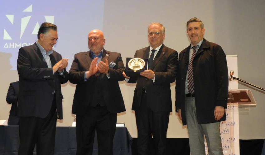 Τις πλακέτες έδωσαν ο πρόεδρος της ΔΕΕΠ και οι πρόεδροι των ΔΗΜΤΟ Βέροιας Μιχάλης Νοταρίδης, Αλεξάνδρειας Δήμητρα Βενιοπούλου και Νάουσας Βαγγέλης Αδαμίδης.