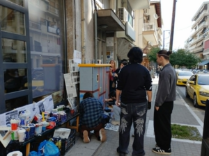 Στο πλαίσιο της προσπάθειας του δήμου Βέροιας για τον εξωραϊσμό του δημόσιου χώρου και συγκεκριμένα του προγράμματος «Τα παιδιά ομορφαίνουν την πόλη» σε συνεργασία με τα σχολεία, πετύχαμε χθες το πρωί, έξω από τον ΛΑΟ, μαθητές και μαθήτριες του πρώτου ΕΠΑΛ Βέροιας συνοδευόμενοι από εκπαιδευτικούς τους, να ζωγραφίζουν το καφάο της οδού Κοντογειωργάκη. Μία μέρα πριν, την Δευτέρα, είχαν ζωγραφίσει παρόμοια εγκατάσταση στην οδό Μεγάλου Αλεξάνδρου, μπροστά από την εκκλησία Μεταμόρφωσης του Σωτήρος και σήμερα θα ζωγραφίσουν δύο καφάο στην πλατεία Αγίου Αντωνίου.
