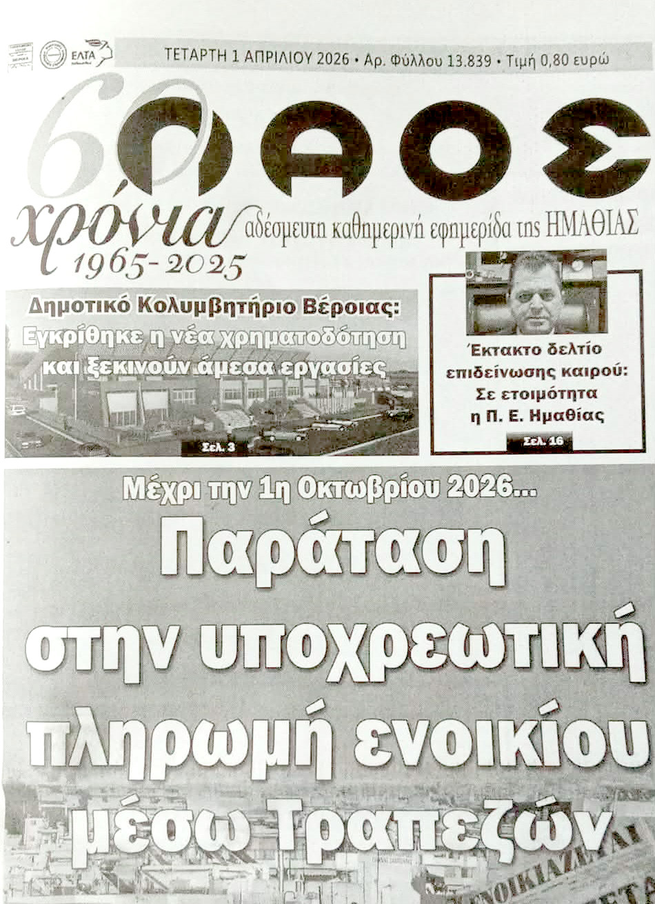 Πολύ καλό για να είναι αληθινό… Και εννοούμε το χθεσινό δημοσίευμα με τίτλο «Δημοτικό Κολυμβητήριο Βέροιας: Εγκρίθηκε η νέα χρηματοδότηση και ξεκινούν άμεσα εργασίες» στο πρωτοσέλιδο και στην σελ. 3 του ΛΑΟΥ.