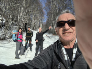 Ο αέρας λυσσομανά το κρύο μας περονιάζει τα κόκαλα ορειβατούμε στην κορυφογραμμή τώρα η μουσική του αέρα μας μαστιγώνει το πρόσωπο, φοράμε γάντια και σκούφους, το πολύ χιόνι και το τσουχτερό κρύο κάνουν την ορειβασία αδύνατη να προχωρήσουμε , όμως εμείς απτόητοι συνεχίζουμε για την κορυφή.