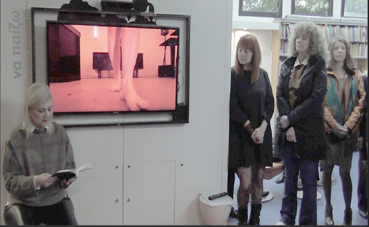Το κοινό, αμέσως μετά μετέβη στην Αίθουσα του Δημοτικού Συμβουλίου, όπου παρακολούθησε το Video της Εικαστικού Άννης Καλτσίδου «Για μια χούφτα γης» ΄΄For a morsel of land΄΄. Ένα έργο βιντεοσκόπησης και επεξεργασίας μοντάζ του Χρήστου Βουλγαράκη, που φέρνει σε πρώτο πλάνο τις παιδικές πουέντ των κοριτσίστικων ονείρων και των πρώτων βημάτων στην ζωή και στον χορό, να βρίσκονται εξόριστες πια από τον αρχικό τους χώρο, δίπλα στο κύμα, ως παρατημένες απώλειες μιας αγωνιώδους διαδρομής. Μετά την προβολή, χαιρετισμό εκ μέρους του Δήμου Βέροιας, απεύθυνε ο Αντιδήμαρχος Ηλεκτρονικής Διακυβέρνησης Καλλίστρατος Γρηγοριάδης.