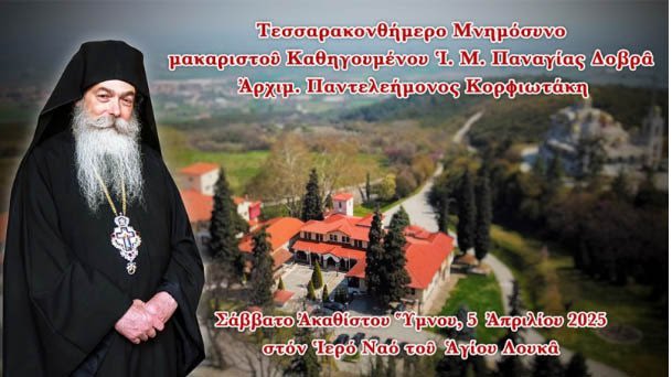 Ἡ Ἀκολουθία τοῦ Μνημοσύνου θά τελεσθεῖ τό Σάββατο τοῦ Ἀκαθίστου Ὕμνου, 5 Ἀπριλίου 2025, ἀμέσως μετά τή Θεία Λειτουργία στόν Ἱερό Ναό τοῦ Ἁγίου Λουκᾶ, στήν Ἱερά Μονή Παναγίας Δοβρᾶ Βεροίας.