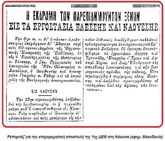 1926: ΕΠΙΧΕΙΡΗΜΑΤΙΚΗ ΑΠΟΣΤΟΛΗ ΤΗΣ 1ης ΔΕΘ ΣΤΗ ΝΑΟΥΣΑ
