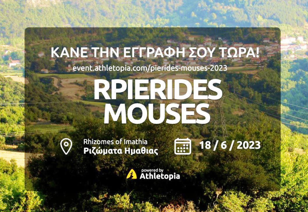 Το Αθλητικό τμήμα του Κ.Α.Π.Α. Δήμου Βέροιας σε συνεργασία με τονΑθλητικό Πολιτιστικό Σύλλογο Ριζωμάτων Βέροιας και τον Ορειβατικό Σύλλογο Ριζωμάτων Ο ΓΡΑΠΑΤΣΑΓΚΑΛΟΣ, διοργανώνουν τον 1ου Αγώνα Ορεινού τρεξίματος ΠΙΕΡΙΔΕΣ ΜΟΥΣΕΣ 2023 11,5 χλμ. καθώς και τον δρόμο των 3,2χλμ. στα Ριζώματα Ημαθίας την Κυριακή 18 Ιουνίου 2023.