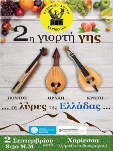 Τις ‘Λύρες της Ελλάδος’ παρουσιάζει φέτος η 2η Γιορτή Γης της Ευξείνου Λέσχης Χαρίεσσας, την Παρασκευή 2 Σεπτεμβρίου στις 8:30 το βράδυ στο γήπ?