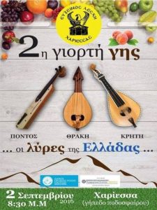 Τις “Λύρες της Ελλάδος” θα μας παρουσιάσει φέτος η 2η Γιορτή Γης, σήμερα Παρασκευή στις 8:30 το βράδυ στο γήπεδο ποδοσφαίρου της Χαρίεσσας.