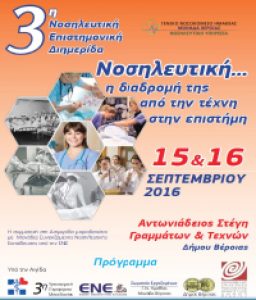 Την 3η Νοσηλευτική Επιστημονική Διημερίδα με θέμα “Νοσηλευτική… η διαδρομή της από την τέχνη στην επιστήμη” διοργανώνει η Δ/νση Νοσηλευτ?