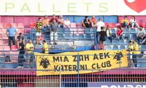 Αποθεωτική υποδοχή επιφύλαξαν στην αποστολή της ΑΕΚ περίπου 50 «κιτρινόμαυροι» οπαδοί, στο ξενοδοχείο Αιγές. Βροντερό «παρών» αναμένεται ν