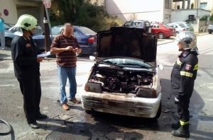 Φωτιά σε αυτοκίνητο κατέσβησαν το μεσημέρι του Σαββάτου άντρες της πυροσβεστικής.