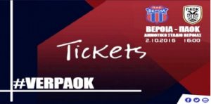 Ξεκίνησε η διάθεση εισιτηρίων για τον αγώνα με τον ΠΑΟΚ (Κυριακή 2/10/2016, ώρα 16:00, Δημοτικό Στάδιο Βέροιας) στις εξής τιμές: