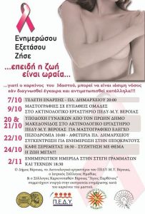 Διαβάστε στην αφίσα το πρόγραμμα δράσεων για την εκστρατεία ενημέρωσης κατά του καρκίνου του μαστού, που συνδιοργανώνουν ο Δήμος Βέροιας, ?