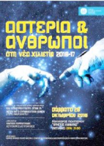 Συνεχίζεται για 17η χρονιά η επιτυχημένη σειρά των ομιλιών «Αστέρια και Άνθρωποι στη νέα χιλιετία» που διοργανώνουν το Γραφείο Πολιτισμού ?
