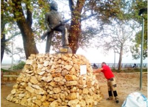 Ανέβηκε στο βάθρο του τελικά ο αντάρτης της «Εληάς» ο οποίος μετά την ανάπλαση τοποθετήθηκε προσωρινά στο χώμα, περιμένοντας την ώρα του…