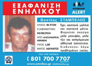Εντοπίστηκε το μεσημέρι της Τρίτης το πτώμα και η μηχανή του 46χρονου Βασίλη Σταμπέλου από την Αλεξάνδρεια, ο οποίος αγνοούνταν από τις 4 Αυγ