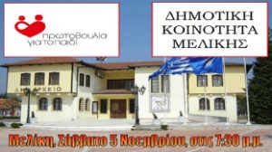 Η Δημοτική Κοινότητα Μελίκης και η Πρωτοβουλία για το Παιδί διοργανώνουν ενημερωτική εκδήλωση με θέμα: « Η Πρωτοβουλία για το Παιδί συστ?