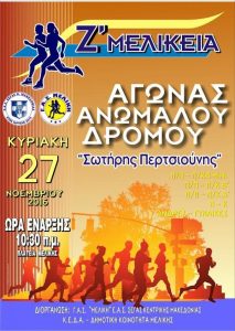 Οι αγώνες δρόμου σε δημόσια οδό με την επωνυμία «Σωτήρης Περτσιούνης» θα γίνουν την Κυριακή 27 Νοεμβρίου στις 10.30 στο πλαίσιο των Ζ΄ Μελίκει?