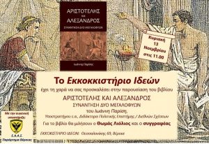 Η παρουσίαση του βιβλίου «ΑΛΕΞΑΝΔΡΟΣ και ΑΡΙΣΤΟΤΕΛΗΣ – Συνάντηση δυο μεγαλοφυών», του υποστρατήγου ε.α. και διδάκτορα Πολιτικής Επιστήμης ?