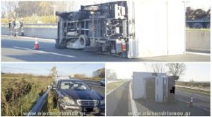 Τροχαίο ατύχημα σημειώθηκε στις 7:40 χθες πρωί Παρασκευής 11 Νοεμβρίου με εκτροπή και ανατροπή φορτηγού αυτοκινήτου με Ιταλικές πινακίδες σ