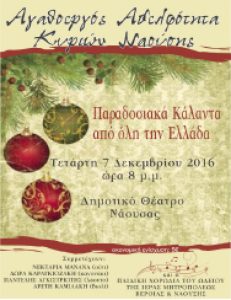 Η Αγαθοεργός Αδελφότητα Κυριών Ναούσης εν όψει των Χριστουγέννων πραγματοποιεί Μουσική εκδήλωση με τίτλο «ΠΑΡΑΔΟΣΙΑΚΑ ΚΑΛΑΝΤΑ ΑΠΟ ΤΗΝ ΕΛ?