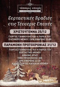 Στο ειδυλλιακό άλσος του Αγίου Νικολάου Νάουσας σας περιμένει με μοναδικές βραδιές και τις φετινές γιορτές το ταβερνείο Τέσσερις Εποχές. Ο