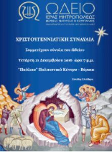 Το Ωδείο της Ιεράς Μητροπόλεως Βεροίας ,Ναούσης & Καμπανίας διοργανώνει Χριστουγεννιάτικη εορταστική εκδήλωση με τα σύνολα του Ωδείου τ?