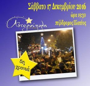 Το Σάββατο 17 Δεκεμβρίου, στις 7:30 το απόγευμα, η Αστερούπολη ανάβει το χριστουγεννιάτικο δένδρο της. Ελάτε και εσείς στον πεζόδρομο Πλατέος,