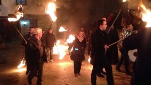 Σε ρόλο… μπουρλοτιέρηδων το βράδυ της προπαπαραμονής στη Φυτειά ο δήμαρχος Κώστας Βοργιαζίδης, ο πρόεδρος του χωριού Νίκος Αγγέλου και η π