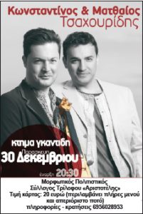 Σήμερα Παρασκευή – Ετήσιος χορός του «Αριστοτέλη» με Κωνσταντίνο και Ματθαίο Τσαχουρίδη