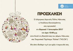 Στο κατάστημα “VOLTA” θα πραγματοποιηθεί αύριο Κυριακή στις 12 το μεσημέρι η καθιερωμένη κοπή της βασιλόπιτας του δήμου Νάουσας.