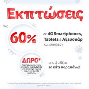 H Vodafone δίνει σε όλους τη δυνατότητα να επωφεληθούν από μοναδικές εκπτώσεις που φτάνουν έως και το 60% για να αποκτήσουν τα αγαπημένα τους 4G Smar