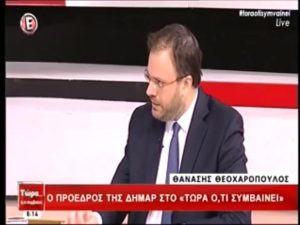 Συνέντευξη του προέδρου της ΔΗΜΑΡ και Κοινοβουλευτικού Εκπροσώπου της Δημοκρατικής Συμπαράταξης Θανάση Θεοχαρόπουλου στο Ε tv για όλες τ?