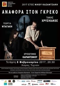 Την παράσταση «Αναφορά στον Γκρέκο» του Νίκου Καζαντζάκη, σε θεατρική προσαρμογή και σκηνοθεσία του Τάκη Χρυσικάκου, παρουσιάζει την Τετ?