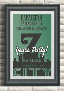 Πάρτι γενεθλίων σήμερα Παρασκευή για το espresso bar CITY στη Νάουσα. Επτά χρόνια μαζί μας το CITY, μας υπόσχεται και στη σημερινή του γιορτή πολλές ?