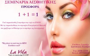 Η σχολή αισθητικής La Vita ανακοινώνει νέα προσφορά στα σεμινάρια αισθητικής το 1+1=1. Παρακολουθώντας το σεμινάριο του Επαγγελματικού Μακιγι?