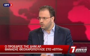 Στην εκπομπή ΕΠΤΑ της ΕΡΤ1 με τον Βάλια Πετούρη ήταν καλεσμένος ο πρόεδρος της ΔΗΜΑΡ και Κοινοβουλευτικός Εκπρόσωπος της Δημοκρατικής Συμπ