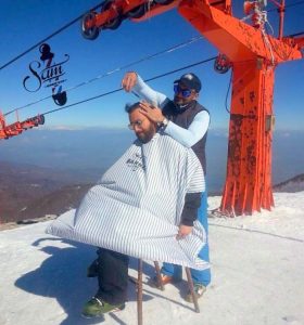 Το είδαμε κι αυτό στο χιονοδρομικό των 3-5 Πηγαδιών! Κούρεμα στα 2.000 μέτρα, στην κορυφή του Βερμίου, από τον σκιέρ κομμωτή στον επίσης σκιέρ πε