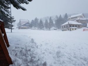 Συνεχίστηκε μέχρι και το μεσημέρι του Σαββάτου η χιονόπτωση στα χιονοδρομικά κέντρα Σελίου (φωτογραφία) και 3-5 Πηγαδιών, επεκτείνοντας τα μ