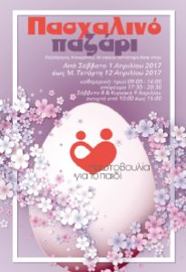 Η Πρωτοβουλία για το Παιδί πιστή στο ραντεβού της, ανακοινώνει το Πασχαλιάτικο Bazaar της, έως και την Μεγάλη Τετάρτη 12 Απριλίου 2017, στο πρώην