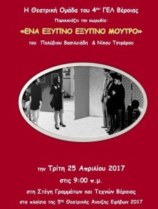 Στον θεατρικό διαγωνισμό της 5ης Θεατρικής Άνοιξης Εφήβων συμμετέχει φέτος η θεατρική ομάδα του 4ου ΓΕΛ Βέροιας, παίζοντας την Τρίτη 25 Απρι?