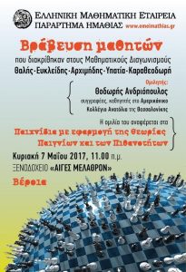 Τους μαθητές που διακρίθηκαν στους Μαθηματικούς Διαγωνισμούς «Θαλής», «Ευκλείδης», «Αρχιμήδης», «Υπατία» και «Καραθεοδωρή» βραβεύει την ?