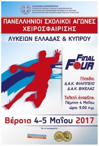 Στη Βέροια θα πραγματοποιηθεί η τελική φάση του Πανελλήνιου Πρωταθλήματος Χειροσφαίρισης Λυκείων Ελλάδας και Κύπρου σχολικού έτους 2016-2017.