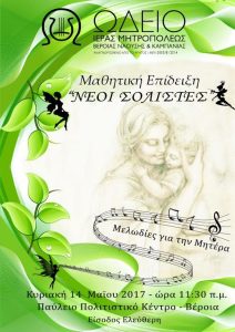 Μαθητική επίδειξη με τίτλο “Νέοι Σολίστες – Μελωδίες για τη Μητέρα” διοργανώνει το Ωδείο της Ιεράς Μητροπόλεως Βεροίας, Ναούσης & Καμπαν?