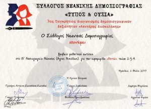 Βραβείο Μαθητικού Εντύπου απέσπασε η εφημερίδα 8κτώ του 8ου Νηπιαγωγείου Νάουσας από τον Σύλλογο Νεανικής Δημοσιογραφίας «Τύπος και Ουσία?