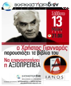 Το νέο βιβλίο του Χρήστου Γιανναρά, αλλά και έναν φόρο τιμής στο έργο και στην πολιτεία του Μενέλαου Λουντέμη και του Στρατή Τσίρκα παρουσι?
