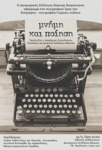 Την εκδήλωση «μνήμη και ποίηση», αφιέρωμα στο συγγραφικό έργο του δικηγόρου – συγγραφέα Γιώργου Λιόλιου, διοργανώνει σήμερα Τετάρτη στις 9