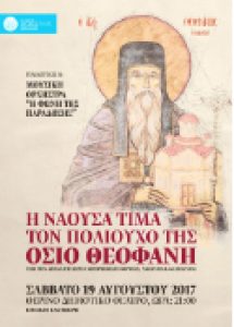 Ο Δήμος Ηρωικής Πόλης Νάουσας προς τιμήν του Πολιούχου Οσίου Θεοφάνους, τον οποίο η πόλη μας τιμά στις 19 Αυγούστου, διοργανώνει πολιτιστική