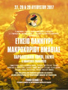 Ο Σύλλογος Ντόπιων Μακροχωρίου & Περιχώρων διοργανώνει και φέτος το ετήσιο πανηγύρι του, το οποίο θα πραγματοποιηθεί στις 27, 28 & 29 Αυγ?