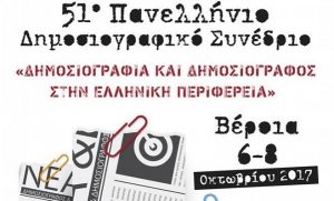 Η Ένωση Συντακτών Επαρχιακού Τύπου (Ε.Σ.Ε.Τ.) διοργανώνει το 51ο Πανελλήνιο Δημοσιογραφικό Συνέδριο της, στη Βέροια 6 – 8 Οκτωβρίου, με θέμα «Δ?