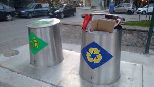 Ιδιαίτερη εντύπωση κάνουν στο κέντρο της Νάουσας τα έξι συστήματα υπόγειων κάδων, για την αισθητική αλλά και για τη λειτουργικότητά τους, λ