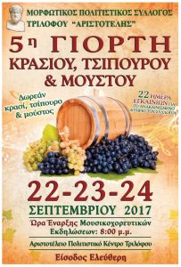 Tην 5η Γιορτή κρασιού, τσίπουρου και μούστου διοργανώνει και φέτος, ο Σύλλογος «Αριστοτέλης» του Τριλόφου Δήμου Βέροιας το ερχόμενο Παρασκε